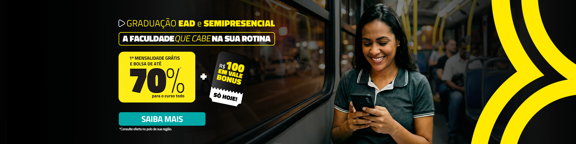 Escolha a facul que te dá bolsa, Vale Bonus e mais benefícios exclusivos ao longo de todo o curso.