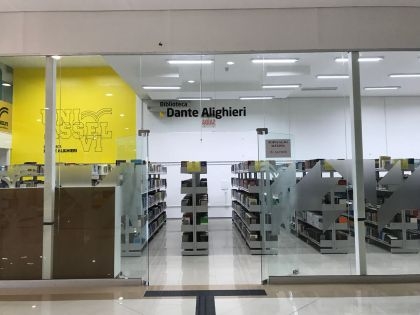 Livros alocados de forma organizada, utilizando o Sistema de Classificação de Dewey para a localização nas estantes. Ambiente climatizado com iluminação natural e artificial.